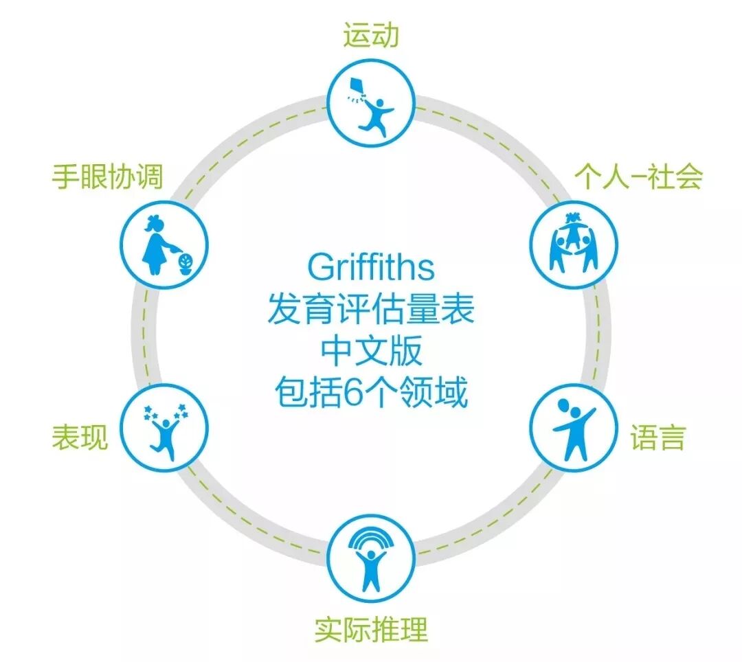 相比较传统的评估量表,Griffiths评估量表包括运动、个人-社会、语言、手眼协调、表现(即视觉空间能力)、实际推理的能力,基本能够全面反映大脑不同区域的神经功能,通过评估可以精准地找出孩子的问题。